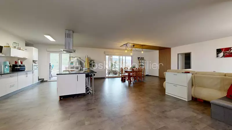 Comprenant une entrée sur vaste pièce de vie de plus de 75m2. 5 chambres, une salle de bain avec douche et baignoire. Deux WC. Un grand garage de 50m2. Une véranda donnant directement sur la piscine. Maison très lumineuse avec de nombreux rangement. Aucun vis à vis.