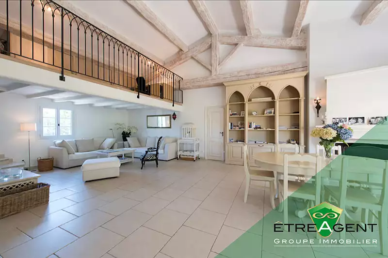 - NOUVEAUTÉ EXCLUSIVITÉ ÊTRE AGENT - Laissez vous séduire par cette SOMPTUEUSE VILLA de plus de 220m² située à seulement 10 minutes à pied du CENTRE VILLE et des PLAGES. Une atmosphère chaleureuse se dégage de son magnifique SÉJOUR CATHÉDRALE avec poutres apparentes de plus de 50m² (particulièrement LUMINEUX grâce à sa double exposition) donnant accès à une agréable TERRASSE COUVERTE sans vis-à-vis surplombant la nature, où la vue sur la forêt et la rivière lui confère un pouvoir de détente absolue. La CUISINE OUVERTE (17m²), conviviale et fonctionnelle avec son BAR et ses nombreux rangements, dispose d'un grand PIANO de cuisine pour Îlot central. Au même étage, vous attendent une SUITE PARENTALE (16,86m²) disposant d'un BALCON sans vis-à-vis et d'une spacieuse SALLE D'EAU (8,09m²), une DEUXIEME CHAMBRE (12,79m²) avec SALLE DE DOUCHE, un DRESSING (10,60m²), et des WC indépendants. La MEZZANINE vous offre quant à elle, une TROISIEME CHAMBRE (11,64m²) avec SALLE D'EAU et un ESPACE BUREAU avec vue sur l'ensemble de la maison. Le REZ-DE-JARDIN dispose d'un STUDIO tout équipé (17,46m²) avec SALLE D'EAU (4,51m²) qui peut être dédié a tout type de projet. Une BUANDERIE, une CAVE à VINS et un GARAGE de 25m² complèteront ce dernier. Ce produit unique, VENDU avec TOUT SON MOBILIER, peut convenir pour un projet de vie ainsi qu'un investissement, ce dernier pouvant être loué 5 mois de l'année facilement. Les ++ : - son emplacement privilégié - DPE C - aucun travaux à prévoir Pour acquérir ce bien d'exception, contactez vite vos conseillers Être Agent pour planifier une visite.