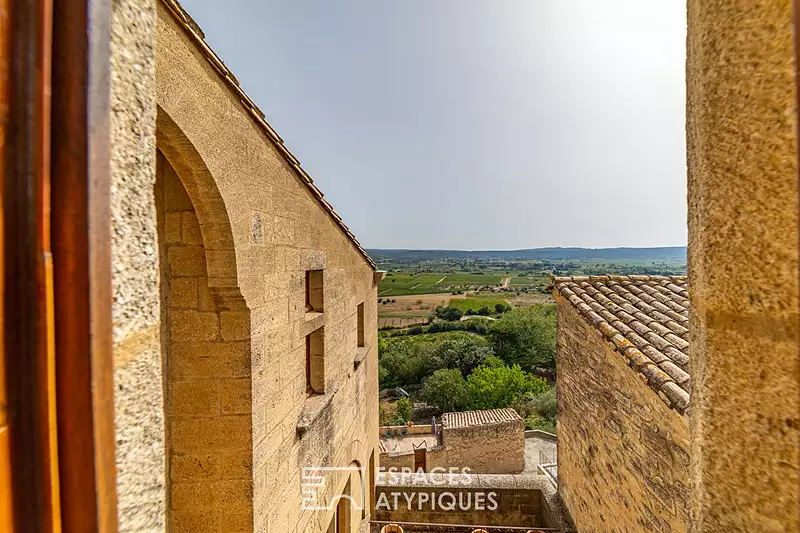 Maison en pierre de 215m² entièrement rénovée nichée au coeur du charmant village de Castillon du Gard situé à 15 minutes d'Uzès. Ses grands espaces et ses hauts plafonds allient murs en pierres, parquets, tommettes et poutres en bois, et offrent une vue imprenable sur la nature environnante. Depuis une spacieuse entrée vous accèderez directement sur une grande salle à manger et sa cheminée. Ce niveau propose également une cuisine équipée, une buanderie, un vestiaire et des toilettes. En prime, vous découvrirez une jolie cour de 25m² qui offre la possibilité d'installer un petit bassin. Dans un subtil jeu de niveaux et par un très bel escalier central en pierre, au premier étage vous découvrirez une agréable pièce qui fait office d'atelier de peinture, puis un salon de presque 45m² offrant un magnifique parquet massif et une cheminée aux dimensions généreuses, et un bureau bénéficiant d'un balcon, le tout bénéficiant d'une vue époustouflante. Au deuxième étage, la maison propose trois chambres dont une suite et une master suite de plus de 40m² avec salle d'eau et wc. Au 3ème et dernier étage, une belle surprise vous attend, une spacieuse terrasse de 30m² offre une magnifique vue sur les toits et le clocher du village et ses collines. Un ascenseur et une cave complètent le bien. Une rénovation très soignée, le charme de l'ancien et l'atypisme de cette ancienne maison sont les principales caractéristiques de cette propriété unique. Proche des commodités, à 30 minutes de la gare d'Avignon et à 15 minutes du centre-ville d'Uzès. Une exclusivité Espaces Atypiques Virginie : 06.77.39.33.14 CLASSE ÉNERGIE : F / CLASSE CLIMAT : C Montant moyen estimé des dépenses annuelles d'énergie pour un usage standard, établi à partir des prix de l'énergie de l'année 2021 : entre 4330 euros entre 5900 euros Virginie Crouzier (EI) Agent Commercial - Numéro RSAC : 921 225 736 - Nîmes.