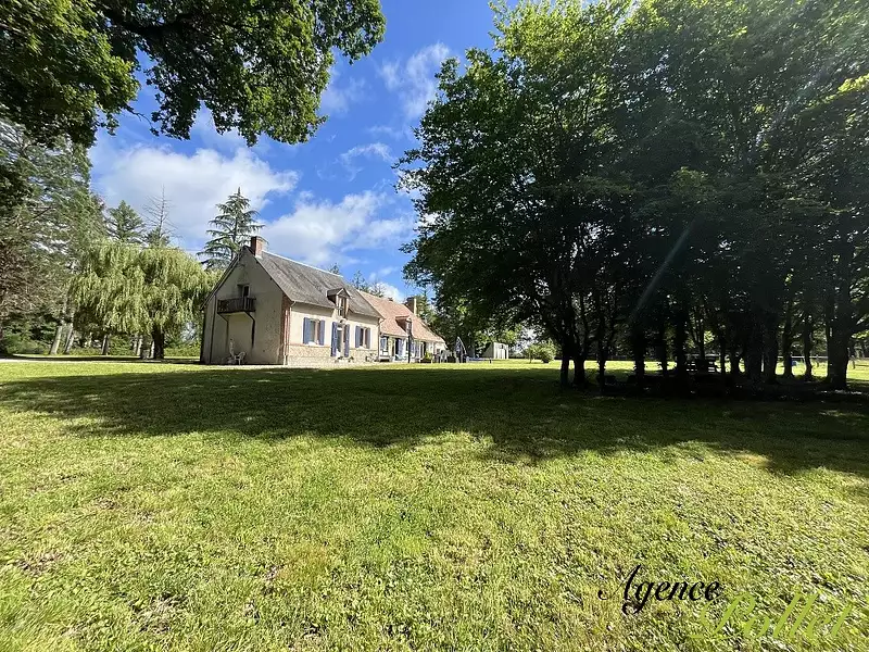 A 1h30 de Paris sud, en Sologne du Loiret, dans un village avec commerces, propriété de 2 ha 81 comprenant une maison de charme, réhabilitée, d’environ 215 m2 habitables sur parc arboré + prés et rivière en contre-bas (+ étang à remettre en état).