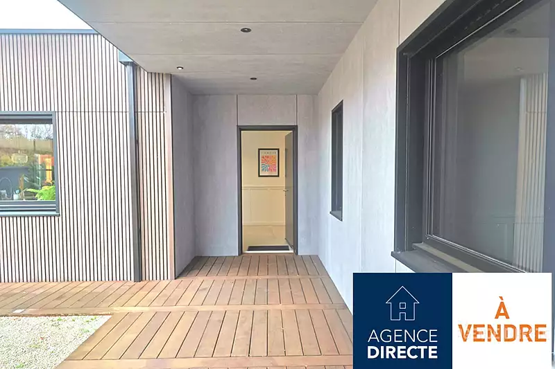 Agence Directe, Le 1er choix à Frais d'agence réduits, vous présente cette maison d'architecte de 2016 en ossature bois. Nichée dans son impasse à seulement quelques minutes de Nantes, cette maison promet tranquillité et intimité. Dès votre arrivé, vous serez frappé par la qualité de construction. Les jeux de couleurs sur les bardages lui donne une allure élégante et contemporaine. Cette maison, entièrement de plain-pied, propose des espaces pour toute la famille. Cinq chambres spacieuses, donnant toutes sur les terrasses, dont une parentale avec son dressing, et deux salles de bains signées Porcelanosa offrant un grand confort. La pièce de vie est vaste, environ 80 m2. D'une part, la cuisine aménagée et équipée ouverte sur l'espace dinatoire, et de l'autre séparé par la verrière coulissant, l'espace détente et salon TV. Le tout avec accès direct aux extérieurs. La maison offre des prestations moderne. Chauffage par aérothermie au sol, domotique. De plus, vous bénéficierez d'une annexe de plus de 100 m2, pouvant servir de garage, salle de sports, atelier, profession libérale. La parcelle est entièrement clôturée, les extérieurs aménagés et arborés, éclairage automatique. Vous aurez la possibilité de réaliser une piscine. Ce bien est unique, une visite s'impose. " Les informations sur les risques auxquels ce bien est exposé sont disponibles sur le site Géorisques http://www.georisques.gouv.fr" (2.90 % honoraires TTC à la charge de l'acquéreur.)