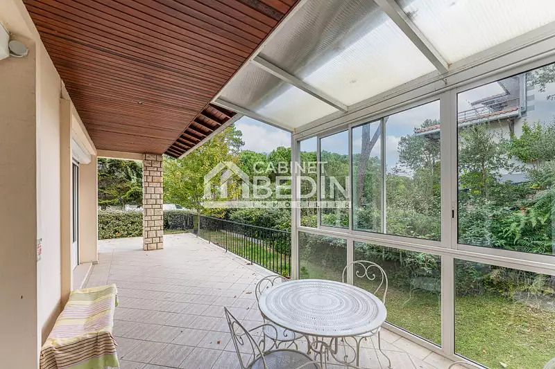 Exclusivité CABINET BEDIN - VILLA PLAGE PEREIRE. La magnifique plage Péreire est à deux pas de cette villa des années 60 offrant une belle capacité d'accueil avec ses 5 chambres réparties sur 2 niveaux. Le rez-de-jardin est composé d'un séjour/salon, de 2 chambres, d'une cuisine équipée ouvrant sur le jardin et d'une salle d'eau. À l'étage supérieur, vous disposez de 3 grandes chambres, d'une pièce de vie d'environ 40 m2 bénéficiant d'une triple exposition, d'une cuisine équipée et d'une salle de bains mixte. Une grande terrasse couverte permet de profiter de l'environnement calme et boisé du quartier. Buanderie, chaufferie et grande cave/atelier complètent ses prestations. . Les informations sur les risques auxquels ce bien est exposé sont disponibles sur le site Géorisques : www. georisques. gouv. fr. Montant estimé des dépenses annuelles d’énergie pour un usage standard : entre 4174 et 5648 Euros/an (année de référence 2023)