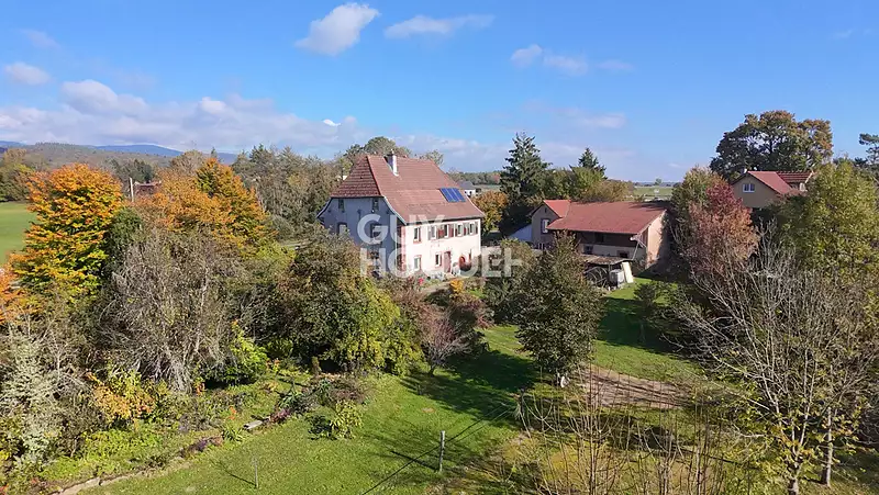 En exclusivité dans votre agence immobilière Guy Hoquet Burnhaupt Découvrez cette superbe demeure de caractère des années 1900 offrant 217 m² habitables et érigée sur un vaste terrain de 1 hectare 43 ares 35 centiares, un cadre exceptionnel où espace et potentiel se conjuguent à merveille. La maison riche en cachet et en volumes se compose au rez-de-chaussée d'un hall d'entrée, d'un salon lumineux, d'un séjour convivial, d'une cuisine meublée et équipée, d'un toilette et d'une chaufferie. A l'étage un palier dessert quatre belles chambres, un bureau, une salle de bain et un toilette séparé. Les combles, d'une surface d'environ 90 m² aménageables offrent encore de multiples possibilités d'agrandissement. Les fenêtres en double vitrage et le système de chauffage au bois participent au confort et à la performance énergétique de la maison. A l'extérieur, le terrain entièrement clos et arboré dévoile un environnement rare et paisible, sans aucun vis-à-vis, bordé par la forêt et traversé par le cours d'eau « La Madelaine ». Les nombreuses dépendances constituent un véritable atout : un bâtiment annexe comprenant un garage, un atelier, deux pièces et un grenier aménageable, mais aussi un abri de jardin, un abri à bois, un grand hangar de stockage actuellement utilisé pour le foin, ainsi qu'une écurie pour sept chevaux, modulable selon vos besoins. Ce bien d'exception séduira aussi bien les amoureux d'espace et de nature que les porteurs de projets d'habitation, d'activité artisanale ou équestre. Un coup de coeur assuré pour cet ensemble rare, offrant un potentiel remarquable et une qualité de vie incomparable.