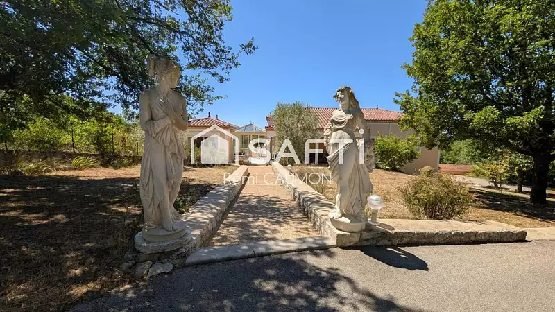 De plain-pied, vous découvrirez une belle pièce de vie avec une cheminée Insert donnant sur une terrasse couverte avec pergola bioclimatique, une cuisine ouverte et équipée, 3 belles chambres avec rangements, une S.D.B avec douche et baignoire, un WC.