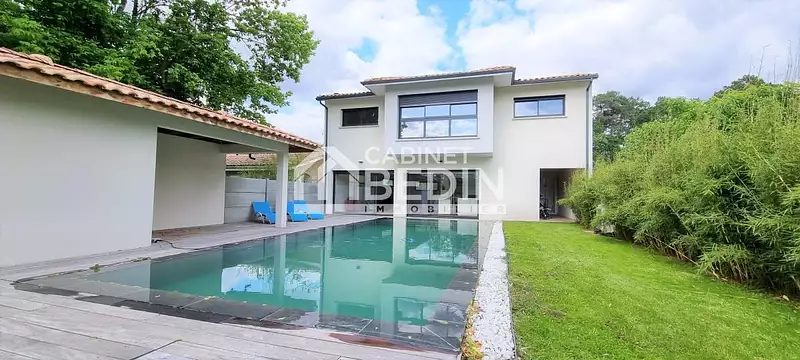 CESTAS GAZINET. Rare sur la commune de Cestas, maison de 2020 aux prestations de qualité : vous serez séduits par sa grande pièce de vie avec cuisine US aménagée et entièrement équipée de plus de 80m² ouverte sur de larges baies vitrées avec accès direct sur terrasse et jardin exposées Sud ouest. La partie nuit comblera tous vos besoins avec ses quatre chambres confortables, son grand dressing sur mesure, sa buanderie et ses 3 salles de bains. Dernier atout : piscine au sel avec liner miroir. Garage motorisé. Accès gare de Gazinet à pied ainsi qu' aux écoles et commerces du quartier de Cestas Gazinet. Proximité également avec l' Intermarché, sa galerie commerciale et le bus TBM. Logement économe bénéficiant d'un DPE classé A !. Les informations sur les risques auxquels ce bien est exposé sont disponibles sur le site Géorisques : www. georisques. gouv. fr. Montant estimé des dépenses annuelles d’énergie pour un usage standard : entre 720 et 1010 Euros/an (année de référence 2021)