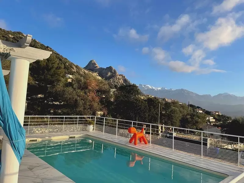 En Haute Corse, situé dans le village typique et recherché de Lumio, entre Calvi et l'Ile Rousse, magnifique villa de 185 m² vue mer et maquis sur un terrain de 3000 m² qui vous offrira une vue imprenable sur le golf de Calvi.