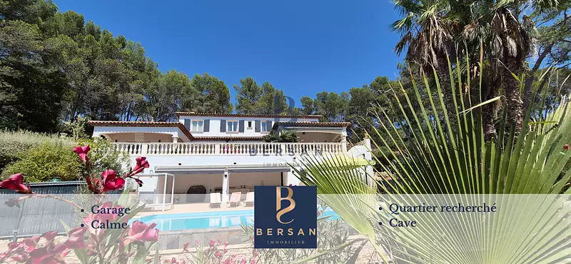 Votre agence BERSAN Immobilier Valescure vous invite à découvrir cette élégante villa de prestige avec piscine située au sein d'un domaine privé et sécurisé, s'étendant sur une parcelle de plus de 5000 m² . Située dans un quartier très recherché, cette villa spacieuse se dresse au coeur d'un cadre verdoyant. Bénéficiant d'une exposition idéale, elle est inondée de lumière naturelle et offre une vue panoramique exceptionnelle grâce à sa position en hauteur. La villa est agencée sur deux niveaux. Le rez-de-chaussée s'ouvre sur un hall d'entrée qui mène à un vaste séjour avec cheminée. Vous y trouverez également une cuisine moderne entièrement équipée donnant sur agréable terrasse couverte, un WC séparé, ainsi qu'une chambre de maitre avec salle d'eau, WC et dressing. Un vaste bureau, pouvant servir de chambre supplémentaire si besoin. A l'étage, trois grandes chambres, chacune avec sa propre salle d'eau, vous attendent (l'une avec baignoire et WC), offrant des espaces de rangement généreux (24 m², 18 m², 16 m²) et un WC séparé. Au rez-de-chaussée, un studio indépendant de 24 m² est à disposition, idéal pour la location ou pour héberger une personne à charge. Un grand garage de plus de 45 m² et une cuisine d'été ajoutent encore plus de confort à cette propriété. Cette villa de 2008 propose des prestations haut de gamme : climatisation réversible dans toutes les pièces, pompe à chaleur au sol (chaud et froid), cheminée, double vitrage, baies vitrées à galandage, piscine à débordement au sel, sécurisée et chauffée, vaste terrasse de 150 m², terrain de pétanque et portail électrique. Une propriété sans travaux à prévoir, offrant une qualité de vie exceptionnelle dans un environnement sécurisé, tout en restant proche des plages et des commodités. L'ensemble de l'équipe de l'agence BERSAN Immobilier reste à votre service pour vous apportez de plus amples informations.