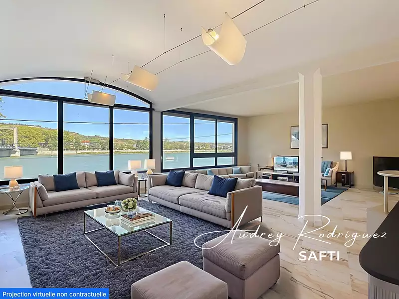 Cette propriété d’architecte, contemporaine et intemporelle, offre une vue panoramique exceptionnelle sur le Rhône et les coteaux environnants. Nichée dans un quartier résidentiel recherché, à deux pas des commodités, elle conjugue volumes généreux, prestations haut de gamme et potentiel rare. Édifiée sur une parcelle paysagée d’environ 730 m², la maison développe 215 m² habitables, complétés par un sous-sol de près de 150 m². À l’extérieur, un vaste carport permet de stationner plusieurs véhicules, tandis que l’arrière dévoile une cour pavée, un coin potager et un ancien terrain de tennis offrant la possibilité d’aménager un espace piscine avec pool house. Dès l’entrée de plus de 20 m², le ton est donné : sols en marbre, escalier en colimaçon majestueux et volumes lumineux. Ce niveau dessert un bureau, une chambre avec placard et balcon privatif de 8 m², une salle d’eau, des toilettes ainsi qu’une buanderie de 20 m².