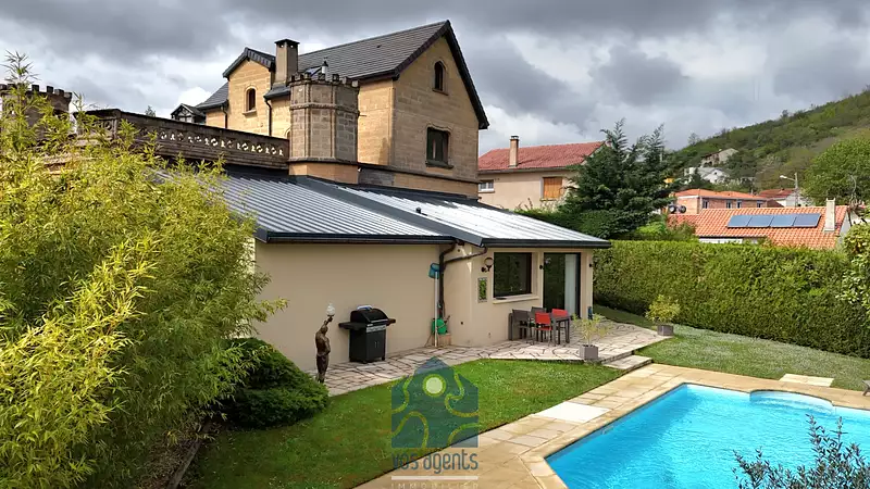Vos Agents vous proposent... une maison de caractère de 218m2, bâtie sur une parcelle de 850m2 offrant parkings, garage double, jardin luxuriant avec terrasses, piscine et petite annexe, idéalement située sur la commune de Blanzat, dans un quartier calme, proche de toutes commodités et des grands axes.