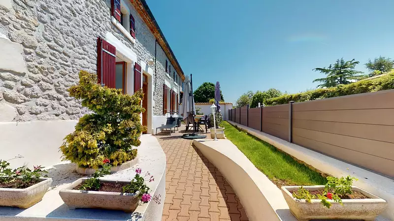 Belle Charentaise en Pierre de 218 m², mitoyenne sur un côté, sur un terrain de 1331m2 au coeur d'un village paisible, à 10 minutes de Pons et 25 minutes de Saintes.