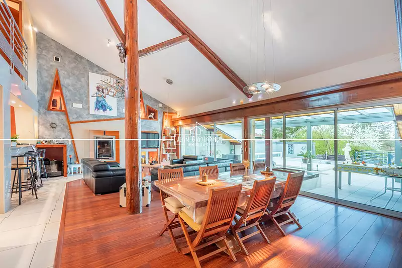 | 218 m² - 7 pièces - 3 chambres - ter. 1 374 m² | Orientation : Est, Ouest, Sud, Sud-Ouest |