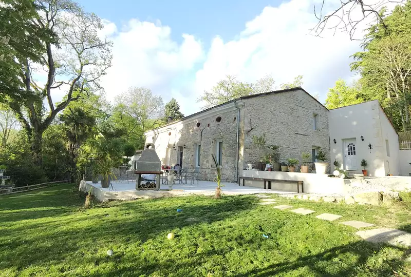 A vendre, superbe maison en pierre de 215 m² située dans un environnement paisible, sur un terrain arboré de 3 800 m². Cette propriété de caractère se compose de 4 chambres dont une vaste suite parentale de 56 m² avec salle d'eau et dressing, d'une grande salle de bains, d'un salon convivial, ainsi que d'une cuisine ouverte sur un patio très lumineux, idéale pour profiter d'un espace de vie intérieur-extérieur harmonieux. En complément, une dépendance de 70 m² offre de multiples possibilités d'aménagement : logement indépendant, atelier ou bureau. Cette maison allie charme de l'ancien, beaux volumes et prestations de qualité. Idéale pour une famille ou un projet d'accueil touristique. A découvrir sans tarder.