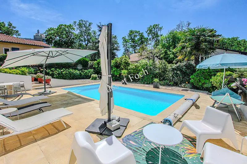 Située dans un quartier résidentiel au calme, à proximité immédiate du parc d'hiver de Biarritz, belle Villa d'une superficie de 220 m² sur un terrain de 711 m2. Vous découvrirez une grande et lumineuse véranda climatisée (24m2) d'un salon / salle à manger (32m2), d'une cuisine dinatoire équipée, une belle suite parentale avec sa salle de bains intégrée (baignoire balnéo) (34m2) et son dressing, une deuxième chambre avec sa salle d'eau attenante, wc indépendant. Au rez de jardin, vous êtes invité à découvrir un appartement T4 composé d'une cuisine, de deux chambres avec chacune une salle d'eau attenante, un bureau ou chambre d'appoint, une salle de bains avec wc indépendant, ainsi qu'un grand séjour avec cheminée et une buanderie. A l'abris des regards, vous pourrez profiter d'une grande terrasse avec son coin plancha pour vos repas d'été et réceptions. Un double garage (38m2) complète cette belle villa qui est en excellent état et disposant de beaux matériaux. (5.00 % honoraires TTC à la charge de l'acquéreur.) DIDIER LEPINOUX (EI) Agent Commercial - Numéro RSAC : - .