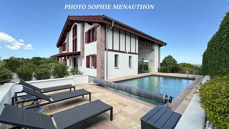 VUE IMPRENABLE SUR LES VALLONS pour cette SUPERBE VILLA DE CARACTERE DE TYPE T7 DE 220 + SOUS SOL DE 110 M2. Elle se compose d'une pièce de vie donnant sur une terrasse et sa piscine chauffée , spacieuse cuisine entièrement aménagée et équipée donnant sur une terrasse couverte, 4 suites parentales, 4 salles de bains, , 4 wc, spacieuse mezzanine/ bureau bibliotheque, buanderie, double garage carrelé et isolé. Le tout sur un parc de 5900 m2. PRESTATIONS HAUT DE GAMME. A VISITER SANS TARDER. A 10 km de Bayonne. Contactez Sophie MENAUTHON Tél : 06 25 42 67 68 ou Séverine ETCHEGARAY Tél : 06 75 49 61 04 EQUINOXES IMMOBILIER Agence specialisée en biens de Prestige Landes et Pays Basque Plus d'informations (réf. 4000924401) Prix TTC et Honoraires à charge vendeur TTC Prix moyens des énergies indexés au 31/12/2021 (abonnement compris). Montant estimé des dépenses annuelles d'énergie pour un usage standard : entre 1 270 € et 1 270 € par an. Les informations sur les risques auxquels ce bien est exposé sont disponibles sur le site Géorisques : georisques.gouv.fr