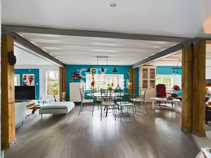 Votre agence Guy Hoquet Bourg Achard vous propose à la vente sur la commune de Flancourt Crescy en Roumois, cette superbe longère rénovée en quasi totalité, comprenant : - Au rdc : entrée, séjour/salon avec poêle à granulés, une grande cuisine E/A avec accès sur une véranda, 2 belles chambres, salle de bains et douche, wc séparé, lingerie, dégagement. Une grande pièce de 25 m2 où vous pourrez y projeter votre créativité en y terminant les travaux d'aménagement. - Au 1er : chambre en mezzanine, 2 chambres en enfilades. les travaux en cours ont pour but de créer 2 nouvelles chambres, une salle de douche et un wc séparé. - Un magnifique parc arboré de plus de 8000 m2 vous attend avec sa marre aménagée, une dépendance de 50 m2, un garage et 2 autres bâtiment. En cas de grosse chaleur vous aurez accès à votre piscine hors sol. - Fenêtres PVC, chauffage par pompe à chaleur et poêle à granulés.