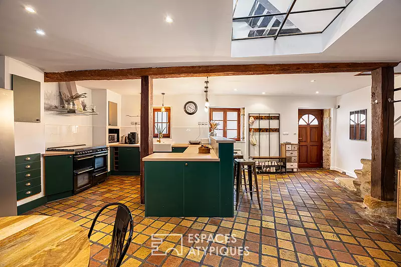 Située sur la commune de Fontaines-Saint-Martin, à seulement 15 minutes de Lyon, cette ancienne ferme de 1850 a été entièrement réhabilitée pour devenir une maison-loft en triplex de 220 m². Tomettes au sol, pierres et poutres apparentes : le caractère de cette maison s'affirme dès l'entrée. La cuisine entièrement équipée fait face à l'espace salle à manger, organisé autour d'une cheminée. Un escalier en pierre mène à la suite parentale avec dressing et salle d'eau privative, puis à un second séjour / salon TV, idéal pour des moments de détente. Une seconde chambre et une salle d'eau complètent ce niveau. Un escalier en métal distribue deux chambres supplémentaires ainsi qu'un bureau et permet l'accès à une terrasse « sur le toit » de 30 m². Les volumes généreux, le cachet et le caractère de cette bâtisse en font un lieu de vie unique. Garage. Climatisation. CLASSE ENERGIE : D / CLASSE CLIMAT : B. Montant moyen estimé des dépenses annuelles d'énergie pour un usage standard, indexées aux années 2021, 2022, 2023 : entre 2980 euros et 4080 euros euros (abonnement compris) Contact - Loïc : 07 61 09 19 75 Loic Odouard (EI) Agent Commercial - Numéro RSAC : 753 650 721 - Lyon.