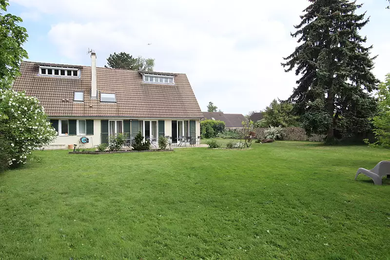 Maison de 10 pièces de type Oranger avec combles aménagés, 220 m² habitables, terrain 1.349 m² (piscinable), hall d'entrée, salon double (Sud/Ouest) avec poêle (42m²), salle à manger (12m²), cuisine équipée et ouverte, chambre avec salle d'eau, wc, buanderie/chaufferie et garage double. A l'étage : dégagement, quatre chambres dont une avec dressing et salle d'eau/wc (climatisation réversible), salle de bain, lingerie et wc. Combles aménagés : deux chambres. Chauffage au gaz - Huisseries PVC - Proche commodités à pied (commerces, écoles maternelle et Primaire). Collège (Gif-Chevry) Honoraires inclus à la charge de l'acquéreur de 12.000 euros TTC (2.05%) 585.000 euros net vendeur. (2.05 % honoraires TTC à la charge de l'acquéreur.)