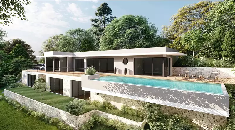 Au sein du très recherché domaine de Beauvallon Bartole, magnifique villa neuve californienne de plus de 220m2 offrant une vue mer sur le golfe de Saint Tropez.