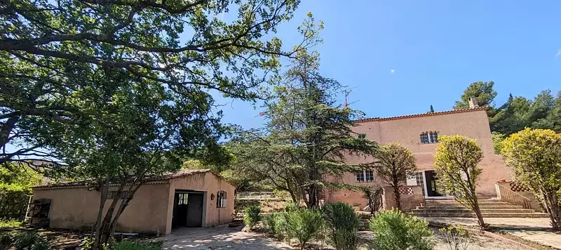 Sur un terrain de 2300 m² entièrement clos et très bien arboré avec grande PISCINE, belle maison style bastide provençale de 210 m². Cette demeure familiale sur 2 niveaux, vous offre de plain-pied un hall d'entrée desservant un immense séjour double traversant, plus 2 grandes pièces à aménager selon vos goûts, salle de bains, toilettes, cuisine à aménager. (possibilité de chambre parentale complète).