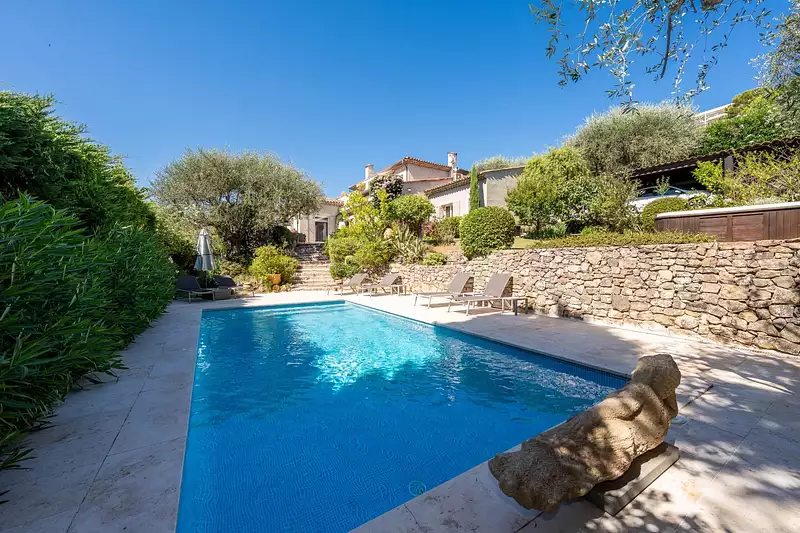 Belle villa de caractère 5 pièces d'env. 220 m² sur 3 niveaux, dans un écrin de verdure avec un terrain de 1300 m² avec un aperçu mer et une piscine chauffée.