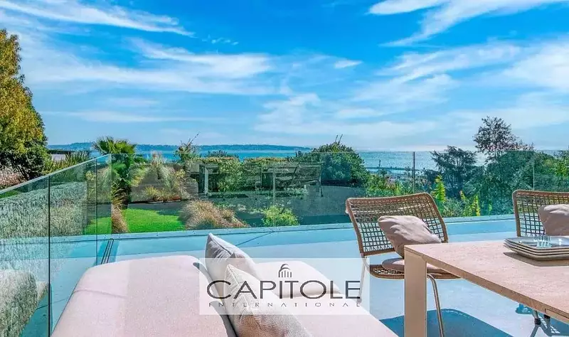 Golfe Juan - Vue mer panoramique du Cap d'Antibes aux Îles de Lérins, magnifique villa contemporaine de 220 m², architecture exceptionnelle, nichée sur un terrain d'env. 1800 m² avec piscine chauffée.