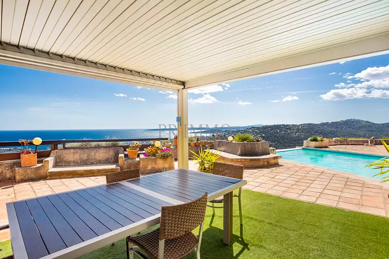 Vue extraordinaire à 180o sur le golfe de St Tropez. Située au sommet de la colline, parfaitement au calme et dans la verdure à 5mn des plages de la Nartelle et de Ste Maxime. 3700m2 de jardin méditérranéen comprenant une villa provençale de 6 pièces principales, magnifique piscine à débordement. Pool-house et spa. 2 grands garages individuels. Le terrain autorise une construction de 400m2.