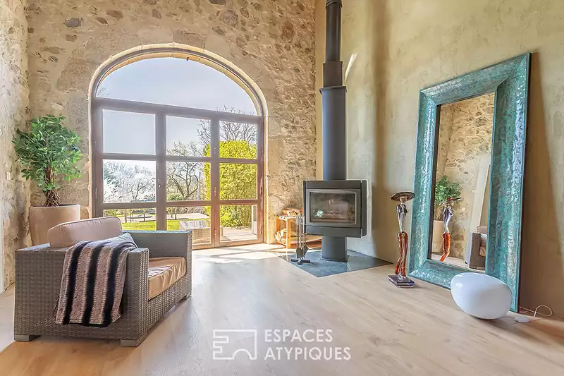 C'est au coeur de la commune de Mûres que se situe cet ancien corps de ferme de caractère repensé et rénové. L'architecture de ce bien est habilement composée d'éléments anciens et contemporains, révélant son véritable charme. La charpente d'origine apparente, les murs en pierre et les volumes généreux font de cette bâtisse un lieu unique, une maison d'exception au confort et à l'esthétique actuels. La magie des lieux en fait un cadre enchanteur pour y vivre et pour la réception de convives. Cette maison de 220 m² environ s'articule sur trois niveaux, sur un terrain de 860 m². Un hall d'entrée permet l'accès à une belle pièce de vie principale. Un poêle contemporain réchauffe cet espace lumineux bénéficiant d'une hauteur sous plafond de près de 4,85 mètres. Les intentions et les styles architecturaux se marient harmonieusement dans ce salon cosy de 38 m² environ avec des murs enduits à la chaux, un plafond cathédral, et des poutres apparentes. Une belle baie vitrée permet l'accès à la terrasse et au jardin exposés plein Sud. Surplombant la pièce de vie au niveau supérieur, la mezzanine dessert une belle cuisine contemporaine indépendante, entièrement aménagée. Celle-ci s'ouvre sur un espace salle à manger dont l'accès peut également se faire directement depuis l'extérieur, plein Sud côté jardin. Une cheminée d'origine sépare harmonieusement ces deux espaces qui invitent à la convivialité et au partage. Un bureau et/ou un espace bibliothèque et une belle suite parentale complètent cet étage. Cette dernière, traversante, possède un balcon et une salle d'eau privative avec douche italienne. Un escalier permet l'accès au dernier niveau. Un vaste palier sur parquet massif dessert trois chambres aux beaux volumes en soupente, ainsi qu'une belle salle de bain complète avec douche, baignoire, vasque et rangements. Un cellier et une buanderie, un garage, un terrain avec deux belles terrasses plein Sud ainsi qu'une piscine hors sol viennent parfaire les belles prestations de ce lieu au caractère unique. Habitation principale, gîte ou investissement locatif ne sont que quelques-unes des possibilités qu'offre ce lieu plein de charme proche de la nature environnante.. Proche des axes routiers. Taxe foncière : 841 Euros. CLASSE ENERGIE : C / CLASSE CLIMAT : E Montant moyen estimé des dépenses annuelles d'énergie pour un usage standard, établi à partir des prix de l'énergie de l'année 2015 : 1.939 Euros. Les informations sur les risques auxquels ce bien est exposé sont disponibles sur le site Géorisques pour les zones concernées : www.georisques.gouv.fr. Contact : Laurence 06 61 02 84 42 Laurence ROMERO (EI) Agent Commercial - Numéro RSAC : 841 857 295 - Annecy.