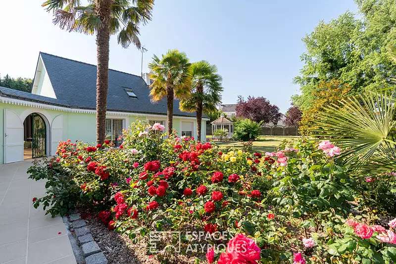 Vente à terme libre - durée 10 ans, pour plus d'informations nous consulter. Au coeur de Redon dans un secteur très résidentiel, cette jolie maison aux accents créoles de 220 m², privilégie la lumière et une vue dégagée sur le jardin et ses espaces paysagés. La porte d'entrée, particulièrement travaillée, invite à l'exotisme et propose en guise d'entrée, un vaste patio, épicentre de la maison. Ce lieu de détente dessert les deux parties de la maison: Au sud et sud ouest, un vaste et lumineux espace à vivre composé d'un salon avec cheminée insert et salle à manger, une cuisine aménagée et équipée ouverte sur le jardin et son potager, un bureau avec vue sur la nature. L'étage est exclusivement réservé à la suite parentale, véritable appartement composé d'une chambre de caractère grand format, un dressing et une salle de bains. La partie nord et nord ouest invite à la détente avec un espace lecture, deux chambres et une salle d'eau. L'étage laisse libre cours à l'imagination et la possibilité de créer de nouvelles chambres, une salle de sport ... Une prairie, un verger et un jardin paysager offrent à cette charmante maison un cadre bucolique. La propriété propose deux entrées distinctes. La première, principale avec portail motorisé, la seconde s'ouvrant sur un bâtiment à proximité de la prairie et qui pourra servir différentes fonctions. A 200 mètres, un accès sur le canal de Nantes à Brest vous offrira de belles balades à pied ou à vélo ! Redon, épicentre de Rennes, Vannes et Nantes, est à seulement 45 minutes des premières plages. Ville d'eau et d'histoire, vous apprécierez son dynamisme et sa quiétude à 2 heures de Paris au départ de sa gare TGV. Vente à terme, pour plus d'informations, se renseigner auprès de l'agence. Les pièces techniques: cave, arrière-cuisine, double garage et atelier. CLASSE ENERGIE : D/ CLASSE CLIMAT : B. Montant moyen estimé des dépenses annuelles d'énergie pour un usage standard entre 2520 et 3544 euros Les informations sur les risques auxquels ce bien est exposé sont disponibles sur le site Géorisques : www.georisques.gouv.fr Plus d'informations et de photos sur notre site: Contact Yann MARTIN 0675988754 -RSAC 751749771 Rennes Yann MARTIN (EI) Agent Commercial - Numéro RSAC : 751749771 - RENNES.