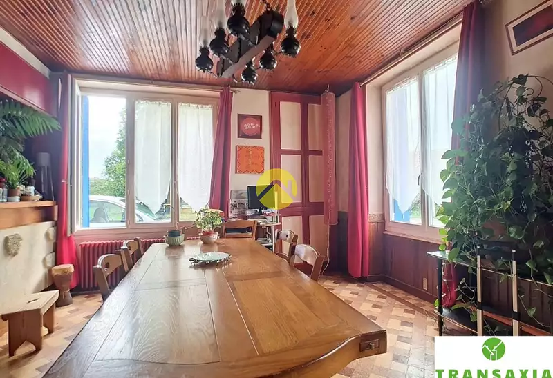 Transaxia SAINT AMAND MONTROND, DILLOARD Maryvonne (EI) Proche de DUN SUR AURON. Maison de plain pied à rafraichir composée d'une entrée- grand séjour + cheminée - cuisine- pièce de 43 m² - 1 chambre + salle d'eau - wc - couloir : 4 chambres - wc. Comble aménageable . Garage . Jardin arboré sur 589 m². TRANSAXIA-FRANCE 13, rue Henri - Barbusse 18200 ST