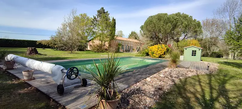 Magnifique propriété de charme située dans un cadre idyllique, offrant un véritable havre de paix. Elle comprend un vaste parc arboré, une piscine 10X5 , local technique, douche solaire, possibilité de profiter davantage grâce à une pompe à chaleur.