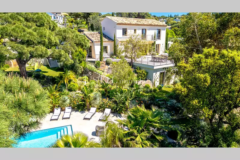 Magnifique villa entièrement rénovée avec des matériaux de qualité. Proche du centre ville accessible à pieds, elle est exposée sud-ouest et bénéficie d'une belle vue mer et collines. Hall d'entrée avec vestiaire et wc invités, vaste séjour cheminée, salle à manger, grande cuisine us équipée, arrière-cuisine avec buanderie, suite parentale avec salle de bains et wc. A l'étage : 3 chambres avec salle d'eau et wc séparés dont une donnant sur un balcon. En rez de jardin, appartement 2 pièces indépendant : séjour, chambre, salle d'eau et wc séparé. Belle piscine dans un écrin de verdure. Double garage et grande cave.