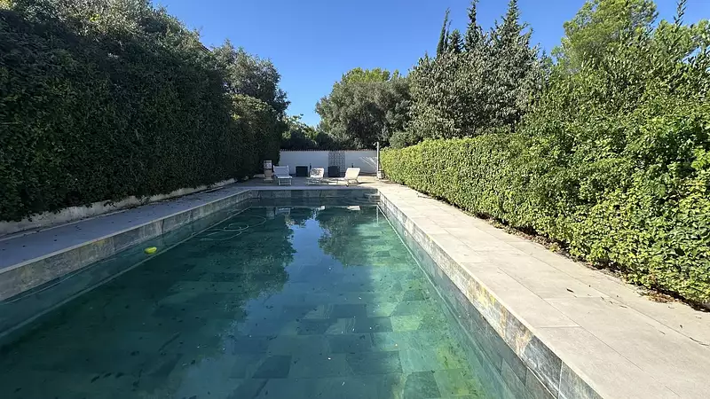 Le vaste jardin de 1640m² est un véritable havre de paix, agrémenté d'une grande terrasse, d'une piscine, d'un cabanon, d'un terrain de pétanque, quelques arbres fruitiers, plantes méditerranéennes, et d'une abondance de végétation. L'espace extérieur est parfaitement aménagé pour profiter du climat méditerranéen.