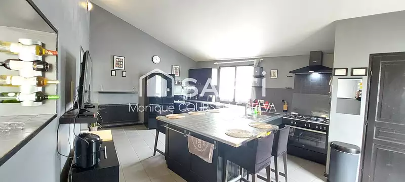 Cette maison de 221 m² sur un terrain de 304 m², construite en 2006, se compose d'une habitation principale de 170 m2 environ comportant 4 chambres, un salon, une spacieuse cuisine équipée, une salle à manger, un bureau ouvert, cellier et 2 salles d'eau ainsi qu'un jardinet orienté SUD avec rangements, permettant d'accueillir un BBQ, transats et espace de réception en prolongement de la cuisine. Elle comprend également une partie attenante de 52 m², actuellement louée, offrant une cuisine, un salon, une salle à manger, une chambre en mezzanine et un jardinet privatif.
