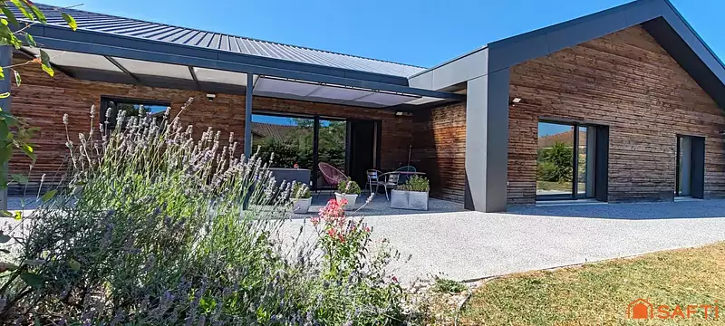 Située dans la charmante commune de Pérouges (01800), cette maison en ossature bois certifiée passive offre un cadre de vie paisible en pleine campagne, idéal pour les amateurs de tranquillité. Proche des écoles et des transports en commun, elle bénéficie de toutes les commodités nécessaires. Dotée d'un terrain de 1879 m² clos avec jardin et terrasse, cette propriété offre un cadre extérieur spacieux et agréable, incluant un garage et une place de parking extérieure.