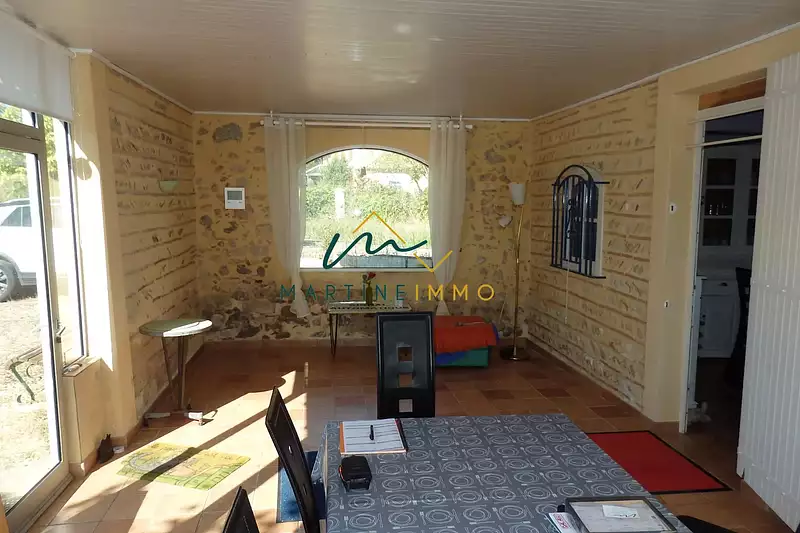 A la campagne, sans être isolé, ce corps de ferme restauré vous offre de grands volumes. Au calme, sans vis à vis, proche d'un village avec toutes les commodités, cette maison à vendre vous propose une grande véranda qui dessert une grande cuisine équipée avec insert ouverte sur le séjour. Quatre chambres se succédent avec deux salles d'eau. Vous y trouverez également une dépendance attenante. La toiture à été refaite récement. Chauffage par pompe à chaleur ainsi que le double vitrage. L'ensemble sur environ 2200 m2. L'agence Martine-immo se tient à votre disposition pour de plus amples informations. Honoraires charge vendeur.