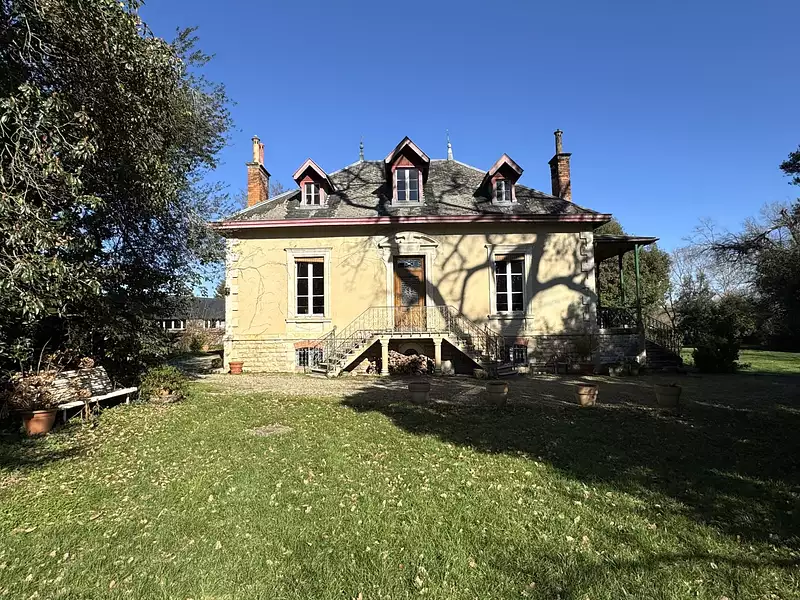 Située dans la ville animée et chargée d'histoire de Condom, cette élégante demeure de 1850, conservée dans toute son authenticité, séduira les amateurs de belles pierres et d'architecture de caractère. À quelques pas seulement des commerces, écoles et restaurants, elle bénéficie pourtant d'un cadre enchanteur au coeur d'un parc privé de 1.3 hectare, bordé par une rivière et orné d'arbres centenaires majestueux.