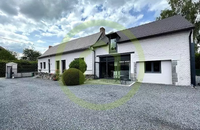 Nichée dans un environnement privilégié, cette superbe maison de 207 m² habitables a bénéficié d'une rénovation haut de gamme. Édifiée sur un terrain clos et arboré d'environ 3 500m² (dont 100 m² constructibles), elle dispose également d'une dépendance et d'un spacieux garage/hangar. Elle offre au rez-de-chaussée un hall d'entrée avec double distribution Pour commencer un salon et salle à manger lumineux, une Cuisine dinatoire haut de gamme entièrement équipée, une suite parentale avec dressing et salle d'eau, deuxième chambre de plain-pied et une salle de bains avec WC indépendant À l'étage, entièrement climatisé, se déploie une seconde suite parentale avec salle de bains et dressing, une quatrième chambre, une salle de sport, ainsi qu'une salle d'eau et WC. Il y a un sous-sol et une cave Chauffage central gaz Les atouts complémentaires Sous-sol avec cave, chauffage central gaz, prestations de sécurité haut de gamme (portail motorisé, système d'alarme). Les extérieurs : un écrin de verdure Un vaste parking fermé, un grand hangar/garage avec atelier, et un jardin clos, arboré et soigneusement paysager, viennent parfaire cet ensemble. Un bien rare qui conjugue prestige, fonctionnalité et cadre de vie privilégié, idéal pour les amateurs de résidences raffinées et exclusives. (Proche accès A2 - à seulement 18 min de Valenciennes) Pour visiter et vous accompagner dans votre projet, contactez Sidonie DE LA PERRIÈRE 06 58 08 18 21 Selon l'article L.561.5 du Code Monétaire et Financier, pour l'organisation de la visite, la présentation d'une pièce d'identité vous sera demandée. Les informations sur les risques auxquels ce bien est exposé sont disponibles sur le site Géorisques : www.georisques.gouv.fr Cette présente annonce a été rédigée sous la responsabilité éditoriale de Sidonie DE LA PERRIÈRE agissant sous le statut d'agent commercial immatriculé au Ville du greffe : AMIENS sous le numéro RSAC N° 413 005 059 auprès de la SAS IMMO RESEAU au capital de 10 000€ - Réseau national immobilier sur internet, 44 Allée des Cinq Continents - 44120 VERTOU - RNE NANTES 519 718 886. Carte professionnelle T et G n° CPI 3002 2018 000 024 971 CCI de Nantes-Saint-Nazaire (44) Garantie par GALIAN - 89 rue de la Boétie - 75008 Paris N°171379G pour 120 000€ pour T. Assurance responsabilité civile professionnelle par GALIAN n° de police 120 137 405 (réf. 35745) - Le professionnel garantit et sécurise votre projet immobilier Prix de vente 609 000 € Prix TTC et Honoraires à charge vendeur TTC