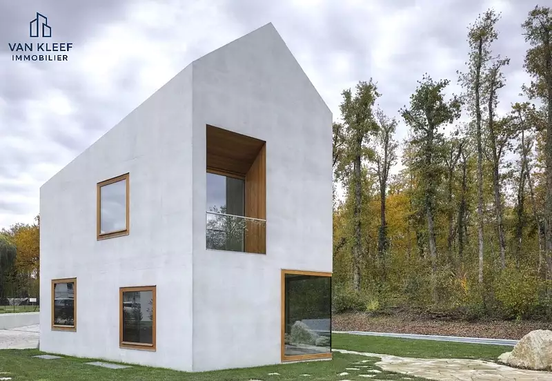 En Exclusivité - Van Kleef Immobilier vous présente cette somptueuse villa d'architecte contemporaine, mitoyenne sur un côté et sans vis-à-vis, construite en 2013 et entièrement rénovée en 2025 avec des matériaux et équipements de très haut standing. Offrant 202 m² habitables et 35 m² de surface utile, cette maison d'exception est implantée sur un terrain paysagé d'environ 600 m², dans un secteur calme et résidentiel, à proximité des écoles, des commerces et des transports en commun.