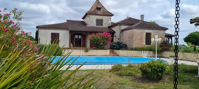 située au nord d'un petit village à 12 mn de villeneuve sur lot vous serez agreablement surpris par cette spacieuse demeure en pierre de 225 m² en position dominante. cette belle villa comprendsune entree une grande piece de vie de 88m² avec tres belle cuisine entirement equipée,2 suites parentales avec salle d'eau et wc ,1chambre avec salle debain un cellier à l'etage une grande mezzanine donnant une chambre de14m² chauffage au sol pompe à chaleur + gaz toutes les chambres benificient de la climatisation le plus de cettte maison un sous sol de 75m² et une piscine de 12x6le tout sur un terrain de 2600m²