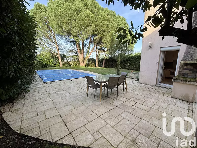 À l’extérieur, un jardin arboré et une piscine apportent un cadre de vie agréable.