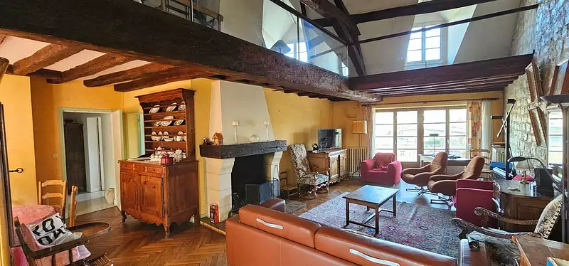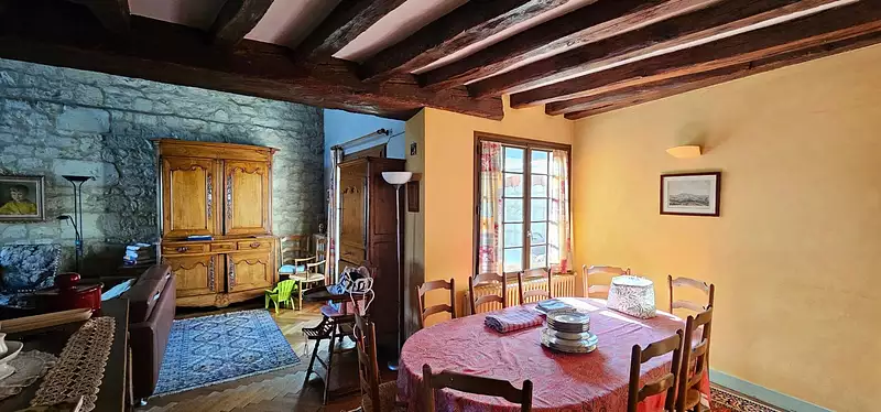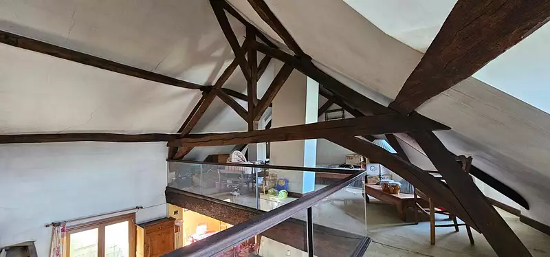 Au premier étage, un salon chaleureux, pourvu d'une cheminée, une cuisine spacieuse et lumineuse, une chambre, une salle d'eau, ainsi qu'une petite terrasse. Enfin, au second étage, vous trouverez une chambre et une grande mezzanine.