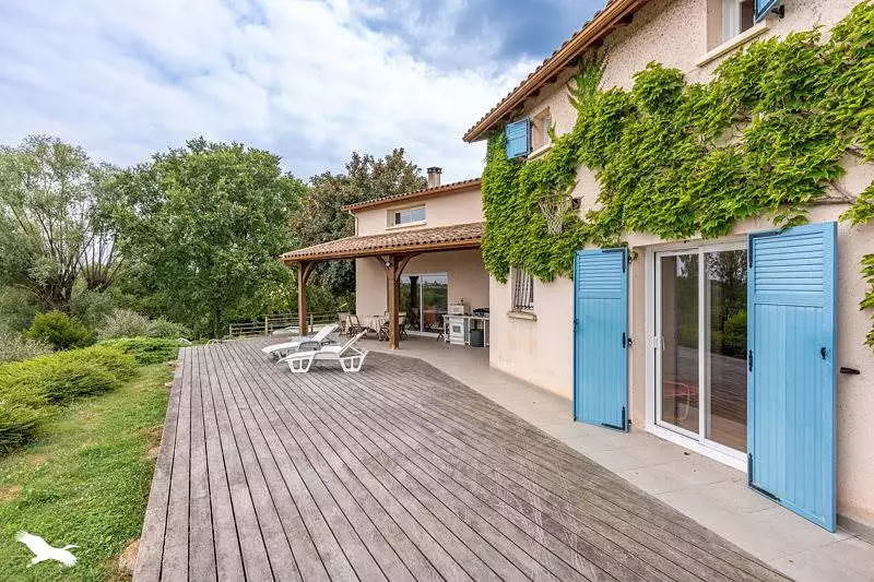 Située sur les côteaux, belle maison familiale offrant une très belle vue sur la campagne, prés de 226 m² habitables. Cette villa bénéficie de beaux volumes, une pièce de vie et coin cuisine agréable qui ouvre sur une grande terrasse; 5 chambres, salle d'eau, 1 bain. Sous-sol total. Parc. Piscine. Bergerac et son aéroport à proximi