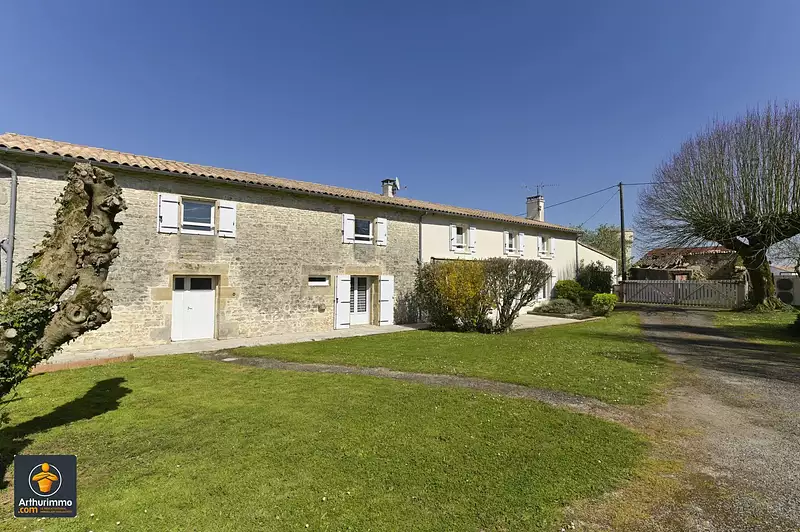 Maison en pierre à sainte neomaye en exclusivite / À seulement quelques minutes de la crèche et à 15 minutes de niort, venez découvrir cette agréable longère pleine de charme, idéale pour une vie de famille au calme. au rez-de-chaussée, la maison offre une cuisine équipée fonctionnelle, un salon chaleureux avec cheminée, un second salon avec coin tv, un bureau, une salle de bains, un wc ainsi qu'un espace buanderie. À l'étage, vous trouverez quatre belles chambres ainsi qu'une salle d'eau avec wc, offrant un espace nuit confortable et bien agencé. un grand espace de rangement attenant à la maison complète ce bien et laisse libre cours à vos projets d'aménagement (atelier, extension, stockage.). À l'extérieur, vous profiterez d'un agréable préau, d'une dépendance non attenante, ainsi que d'une piscine semi-enterrée pour les beaux jours. le tout est implanté sur un terrain clos et arboré de plus de 1 300 m², offrant un cadre verdoyant et paisible. une belle opportunité à découvrir sans tarder ! -