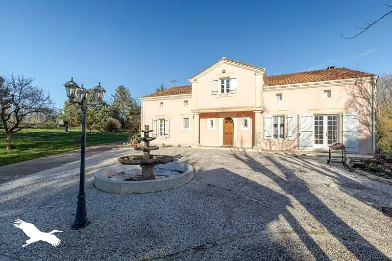 A 12 minutes de Carrefour Soyaux, maison sur sous sol semi enterré comprenant une cuisine équipée ouverte sur ka pièce de vie, 6 chambres dont une suite parentale avec salle de bain (douche et baignoire) au rez de chaussée, 3 salles d'eau, 3 wc, garage, cave, le tout sur un terrain de 12000m²