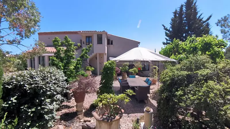 Spacieuse villa et appartement (240 m²) avec 2 chambres, 2 salles de bains, cave, garage et jardin (4980 m²) à Cesseras (34210 - Hérault)