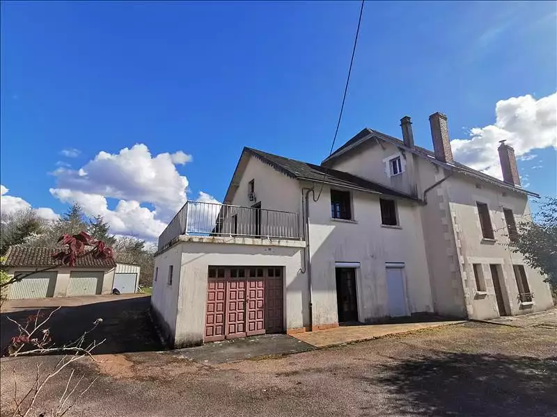 Proche d'un bourg avec commerces, ensemble comprenant une maison d'habitation d'environ 160m² hab., un appartement T3 loué, des garages et dependances sur une parcelle d'environ 2900m² de jardin..