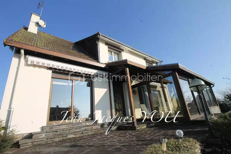 Elle offre, sur un terrain arboré de 1500 m2, une surface habitable de 230 m2, composée, sur un sous-sol intégral carrelé, d'un espace de vie de plain pied comprenant, une belle entrée, une magnifique véranda (28 m2) dotée d'un chauffage par le sol indépendant, un vaste salon salle à manger très lumineux avec insert, une cuisine aménagée et équipée ouverte sur la véranda, deux chambres, un bureau, wc indépendant, une salle de bains. Grands placards.