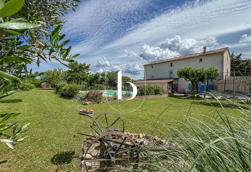 Au sud de la cité Renaissance Barjac... Un petit village en pierre typiquement méridional, agrémenté de chemins communaux qui vous permettront de faire d'agréables balades à pied ou en VTT. Vous apprécierez de vous rafraîchir au "Grand Rocher" dans les eaux calmes de la Cèze. Au calme, dans un cadre bucolique, venez visiter cette ancienne magnanerie datant de 1891 implantée sur un confortable terrain de plus de 2000m² très joliment arboré et paysagé avec jardin potager bénéficiant de l'eau d'irrigation avec un authentique puits en pierre. A l'arrière du terrain, une belle piscine (8 4m) avec plage. Le revêtement intérieur a été refait entièrement en gel-coat avec une garantie décennale. Cette propriété offre environ 230m² de surface habitable en deux logements. Au rez-de-chaussée, un studio indépendant d'environ 60m² comprenant une pièce à vivre avec chambre et salle d'eau et toilettes, le tout donnant sur une cour intérieure mais également sur le jardin. Climatisation réversible et chauffage électrique. A la suite, une cuisine d'été de 22m² avec une chambre chauffée de 21m². A l'étage, l'accès à l'habitation principale s'effectue par une terrasse. Une pièce vitrée, une cuisine, une salle à manger, un salon avec cheminée insert, un bureau, une chambre de passage, une salle de bain et toilettes. Au dernier étage, un dégagement desservant 3 chambres mansardées. Côté pratique, un ensemble de caves et petites dépendances avec sanitaire et wc, le tout pour environ 55m². Un chauffage central avec radiateurs. Vous recherchez une belle résidence au soleil ? Ne cherchez plus et laissez vous séduire par cette Propriété implantée dans un cadre bucolique... Votre conseiller Julien BOTELLA : 0678945908. Une vente sélectionnée par Botella et fils immobilier à Barjac. Réf. 10469