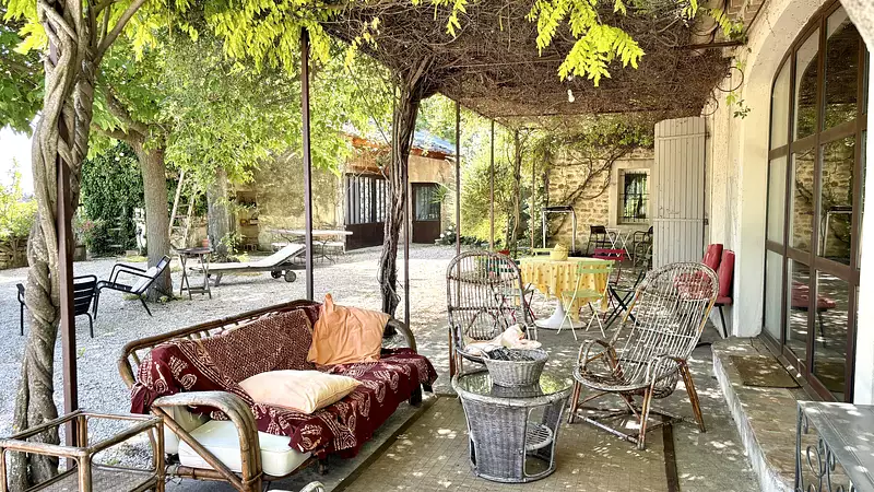CAMARET SUR AIGUES, à 10 mn d'ORANGE, sur 1 500 m2 de terrain au milieu des vignes, ce mas a été rénové pour offrir des prestations de qualité sur l'ensemble des 230 m2 habitables. Il est composé d'une partie principale et d'un gîte attenant avec accès indépendant. Cette disposition permet des espaces séparés pour une vie de famille regroupant plusieurs générations, ou une activité de chambres d'hôtes.