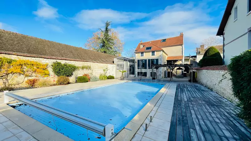 Demeure bourgeoise de caractère au coeur de Chablis Au centre historique de Chablis, cette somptueuse demeure bourgeoise entièrement restaurée séduit par son élégance, ses volumes généreux et ses prestations haut de gamme. Rez-de-chaussée : Belle entrée avec parquet ancien Salon bibliothèque chaleureux Cuisine aménagée et équipée, ouverte sur une véranda Salle à manger conviviale Salon avec cheminée insert Salle d'eau et WC Étage : Palier desservant un couloir avec rangements et cagibis Trois chambres avec parquet massif Salle d'eau avec WC Second étage : Chambre sous combles avec climatisation Dressing Grenier aménageable Sous-sol semi-enterré : Pièce avec rangements Chambre supplémentaire Chaufferie / buanderie Cave voûtée traditionnelle en pierre Extérieurs : Véranda ouvrant sur une terrasse bois Piscine chauffée Espace abrité pour SPA Garage Grand appentis Allée privative Jardin clos de murs. La propriété dispose de deux accès avec un portail automatique Prestations de qualité : Parquets anciens, carreaux ciments et hauteurs sous plafond remarquables Chauffage central par pompe à chaleur (PAC) Climatisation dans la véranda et la chambre sous combles Pool house Adoucisseurs d'eau Système d'alarme Bien rare et exceptionnel à la vente dans le village de Chablis, alliant charme, confort et prestations modernes.